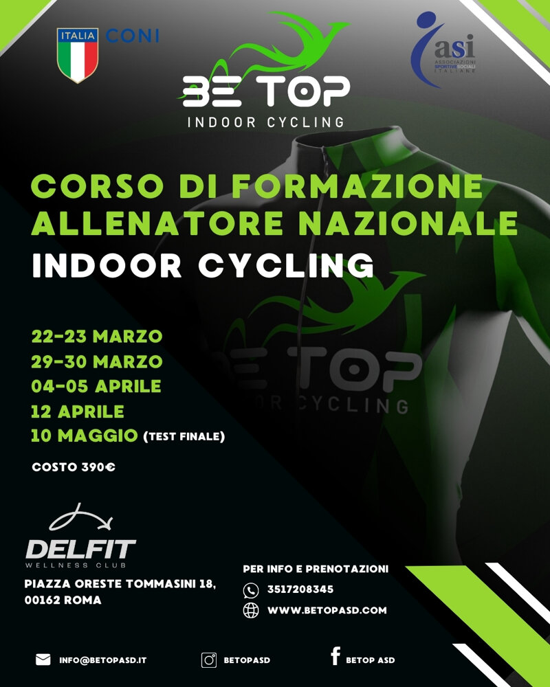 Vuoi diventare un Allenatore di Indoor Cycling? Vuoi far parte di un Team di professionisti seri e qualificati? Affidati a Be Top Indoor Cycling School: Un percorso formativo che ti porterà a diventare un Allenatore Nazionale riconosciuto dal CONI attraverso l'Ente di promozione sportiva ASI.